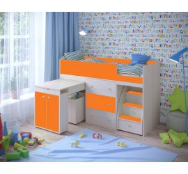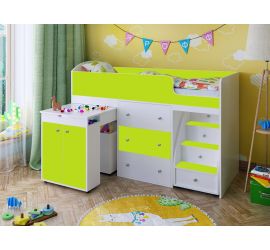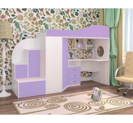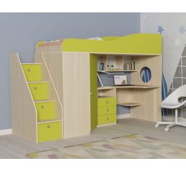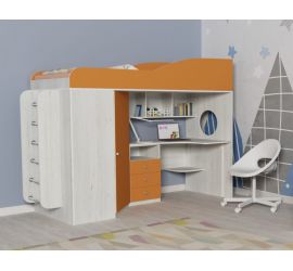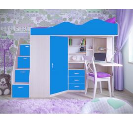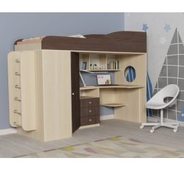 Второй вид кроватей-чердаков рассчитан на возраст детей от пяти лет. Спальное место в таком случае располагается на высоте 1,3-1,6 метра. На первом ярусе чаще всего есть шкаф и рабочая зона в формате письменного стола и книжных полок.