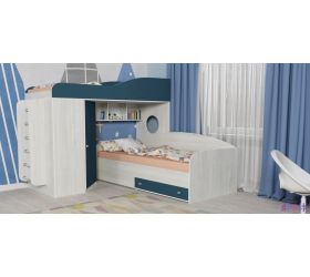 [name] => Кровать-чердак Кадет-2 угловая с металлической лестницей Винтерберг/Лазурь