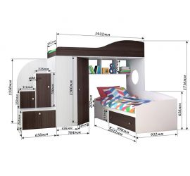 Размеры: высота 2000мм, ширина 2332 мм, глубина 832 мм