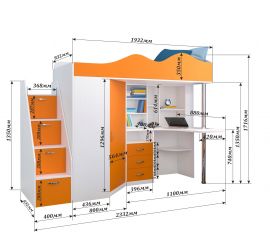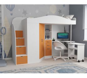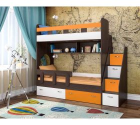 [name] => Кровать двухъярусная Юниор-1 с бортиком Бодего/Белый/Оранжевый
