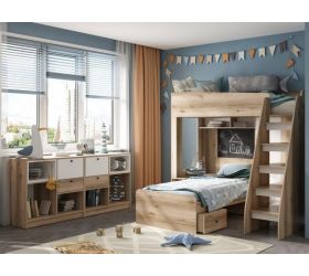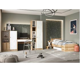 МС Молодежная "Юкки" дуб делано / белый состоит из 12 модулей: