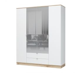 [name] => Шкаф четырехстворчатый с зеркалом Юкки ШК 2Я дуб делано / белый