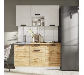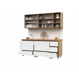 [name] => Кухонный гарнитур Пасадена 1,5 белый / шёлковый камень / дуб вотан