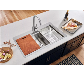 [text] => Мойка с крылом ставиться на любую сторону, так как отверстие под смеситель просверливается на месте специалистом сборки